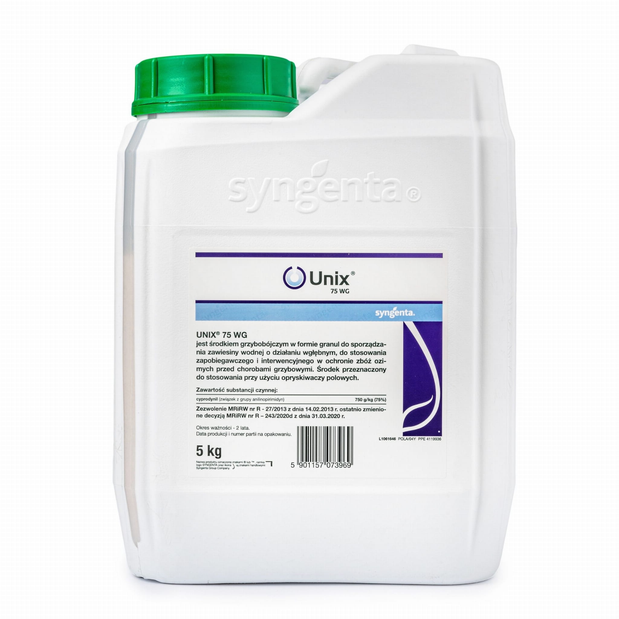 Syngenta Unix 75 WG to środek grzybobójczy w formie granul do sporządzania zawiesiny wodnej, działający zapobiegawczo i interwencyjnie w ochronie zbóż ozimych przed chorobami grzybowymi. Zawiera substancję czynną cyprodynil (anilinopirimidyna) - 750 g/kg (75%)